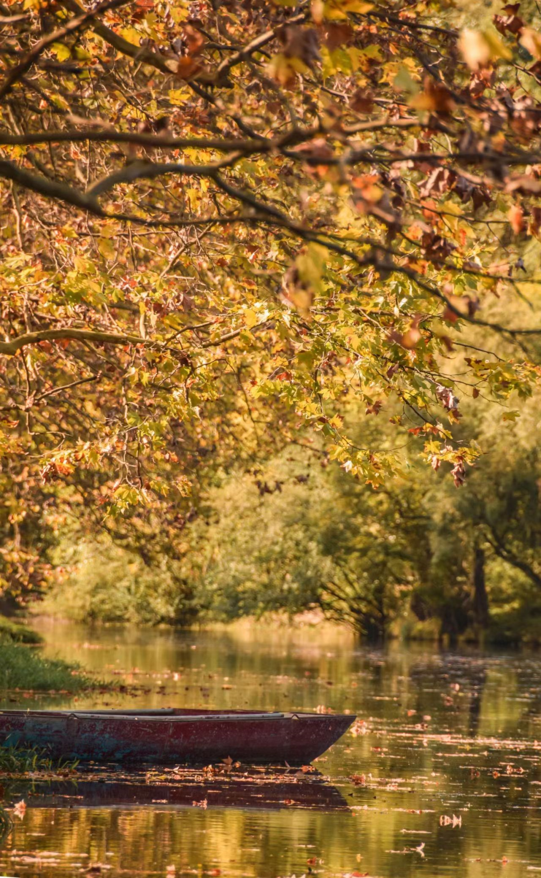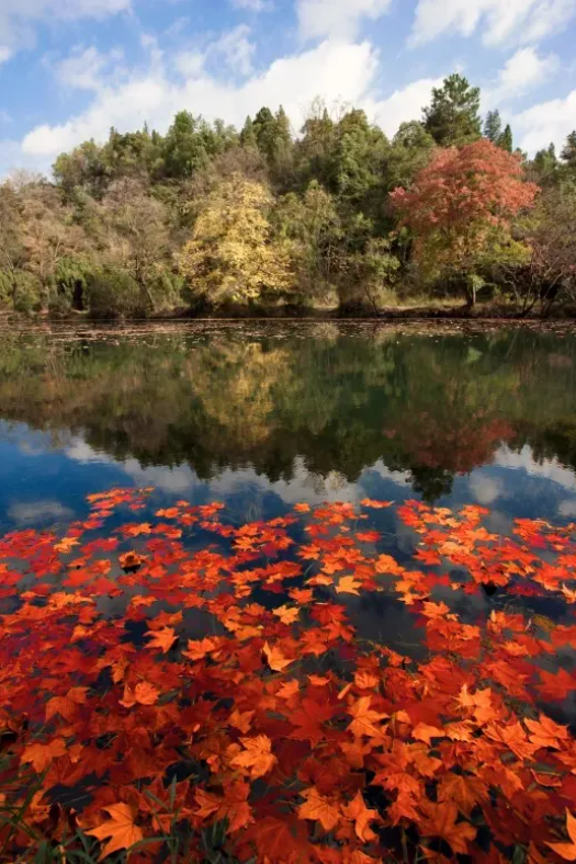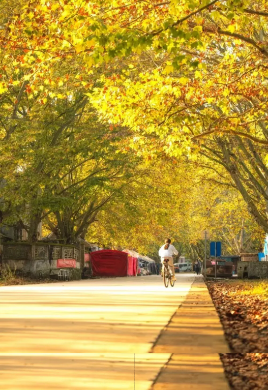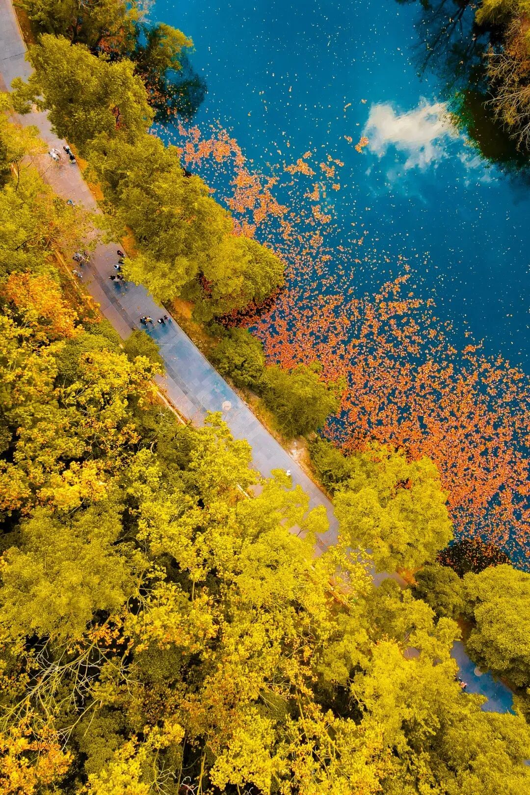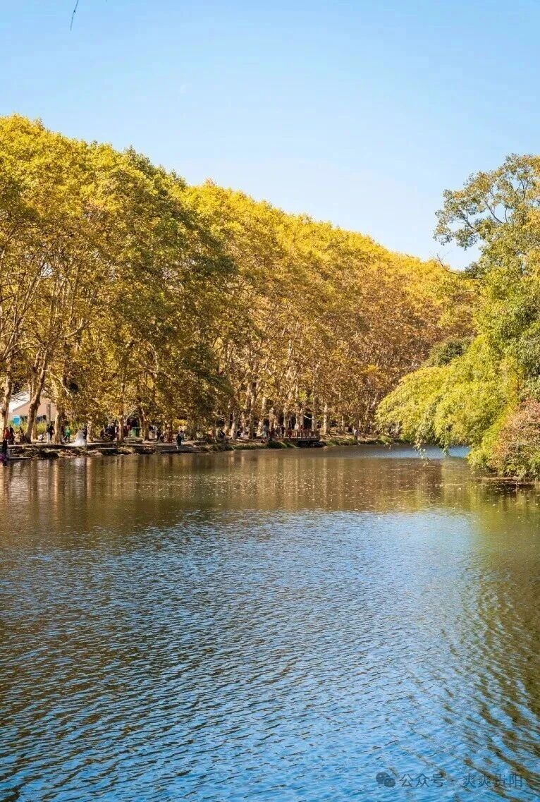 最佳观赏期:10 月下旬至 11 月中旬,金黄树叶倒映湖面,美如油画。