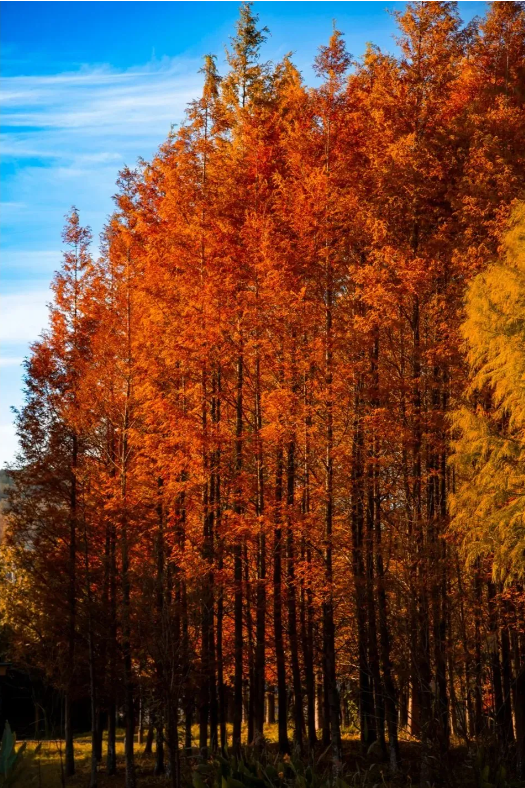 走进十里河滩,那片金黄火红的水杉林映入眼帘,待秋风吹过,沿着河岸前行,漫步其中,感受秋的浪漫与柔情。