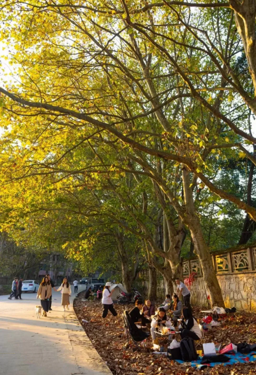 位于花溪国家城市湿地公园内,始建于 20 世纪 50 年代,沿花溪河两岸栽种了 115 株法国梧桐,深秋时节树叶泛黄飘落,铺就金色地毯,与碧绿河水相映成趣,被誉为 “贵阳最美秋景”。