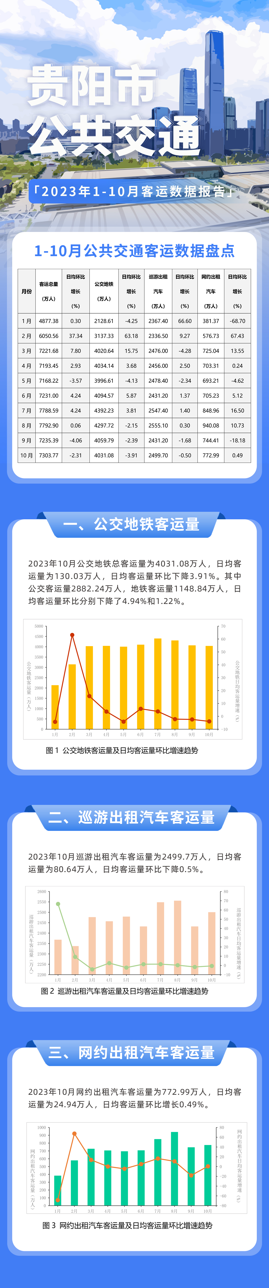 贵阳市城市交通2023年1-10月客运数据报告