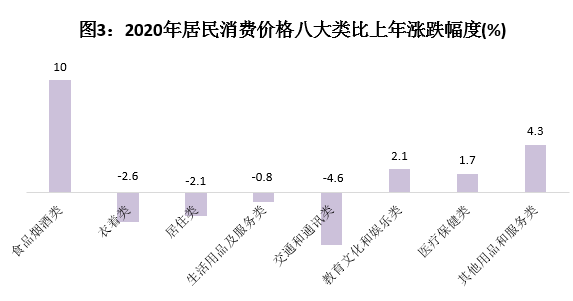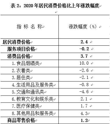 全年居民消费价格总水平累计上涨2.4%,八大类商品及服务项目价格 “四升四降”,食品烟酒价格类涨幅最高,上涨10.0%,其中猪肉价格上涨48.0%。工业生产者出厂价格同比下降1.2%。工业生产者购进价格同比上涨1.1%。