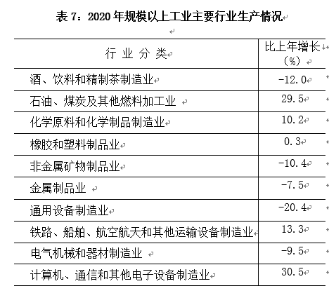 在规模以上工业企业中,轻工业增加值比上年下降0.7%,重工业增加值比上年增长12.5%;国有企业增加值比上年增长13.3%;国有控股企业增加值比上年增长9.8%;非公有制工业增加值比上年下降0.5%;外商及港澳台投资企业比上年增长9.5%;大中型工业企业比上年增长10.1%;小微型工业企业比上年下降7.2%。