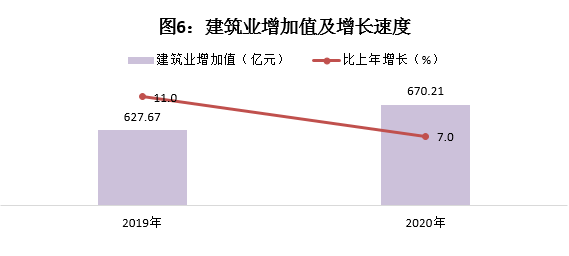 全市建筑业增加值670.21亿元,比上年增长7.0%。具有资质等级的总承包和专业承包建筑企业411个,资质以上建筑企业房屋建筑施工面积9916.85万平方米,比上年增长15.3%;房屋建筑竣工面积1898.69万平方米,比上年下降14.3%。