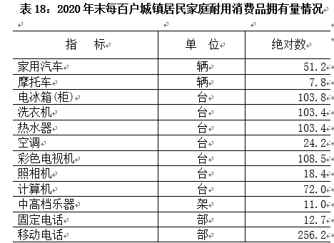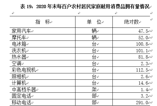 农村居民人均可支配收入18674元,比上年增长8.1%,扣除价格因素实际增长5.6%。每百户居民拥有的家用汽车和移动电话机数量分别为47.5辆和291.0部。