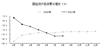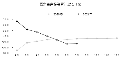 1-8月,固定资产投资同比下降16.4%,降幅比1-7月收窄1.7个百分点。其中,500万以上项目同比下降17.1%;建筑安装工程同比下降24%,比1-7月降幅扩大7.2个百分点;房地产开发投资同比下降15.4%,降幅比1-7月收窄12.9个百分点;商品房销售面积654.25万平方米,同比下降11.2%,降幅比1-7月扩大8.9个百分点。