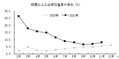 1-11月,全市规模以上工业增加值同比增长8.0%,增速比1-10月提高1.0个百分点,两年平均增长6.7%。其中,规模以上采矿业增加值同比增长5.2%;规模以上制造业增加值同比增长9.6%;规模以上电力、燃气和水的生产和供应业增加值同比下降0.9%。