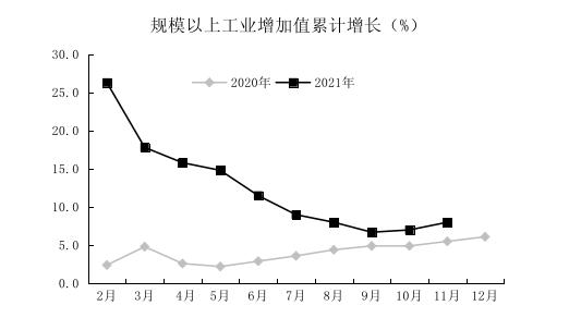 一是部分行业继续下行。我市汽车制造业在经历了两年的高速增长后,今年以来该行业发展持续下行,1-11月,汽车制造业增加值同比下降10.7%,比2020年同期回落32.4个百分点,比2019年同期回落134.5个百分点。医药制造业生产受医保名录调整影响较为明显,医药制造业增加值同比下降12.1%,降幅比1-10月扩大0.7个百分点,自今年6月以来,持续负增长。