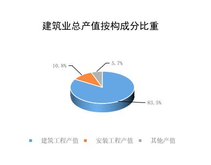 2021年,全市建筑业总产值中,建筑工程产值完成2488.08亿元,同比增长15.3%;安装工程产值完成321.51亿元,同比增长9.3%;建筑工程产值占比达83.5%,同比提高0.5个百分点,建筑工程产值为建筑业总产值的主要构成部分。