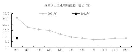1-2月,全市规上工业增加值同比增长8.0%。其中:规上采矿业同比增长7.4%;规上制造业同比增长8.4%,规上电力、热力、燃气及水生产和供应业同比增长4.1%。