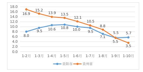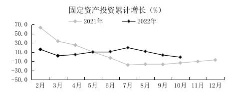 1-10月,全市固定资产投资同比下降1.3%,增速较1-9月由正转负,回落4.7个百分点。
