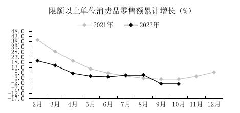 1-10月,限上社零总额822.14亿元,同比下降3.1%,降幅较前三季度扩大0.2个百分点。