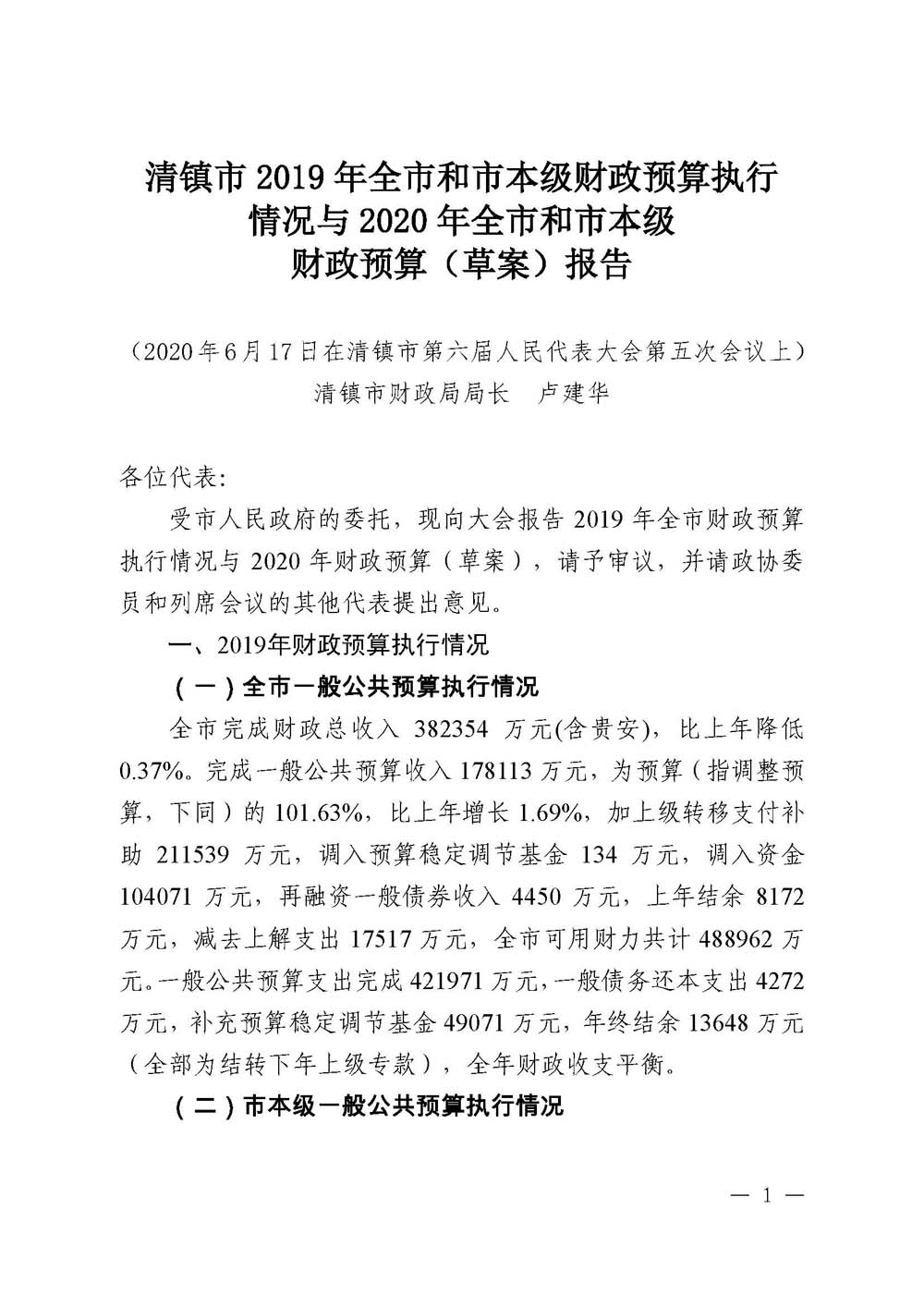 原文下载:清镇市2019年全市和市本级财政预算执行情况与2020年全市和市本级财政预算(草案)报告.pdf