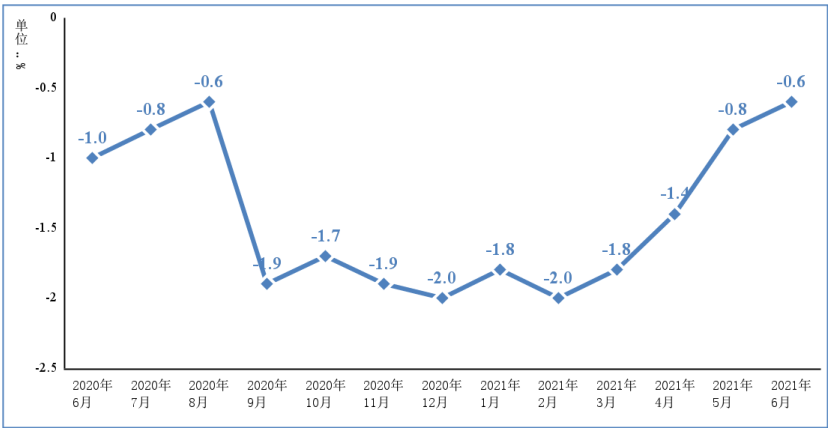 图2 2020年6月以来电子信息制造业PPI分月增速