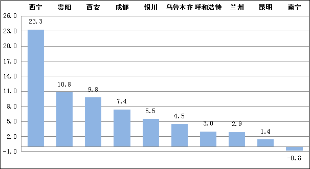 图二西部省会城市1—5月规上工业增加值累计增速对比图