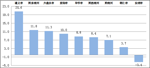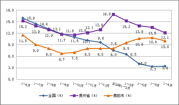图一全国、全省、贵阳市上半年规上工业增加值增速对比图