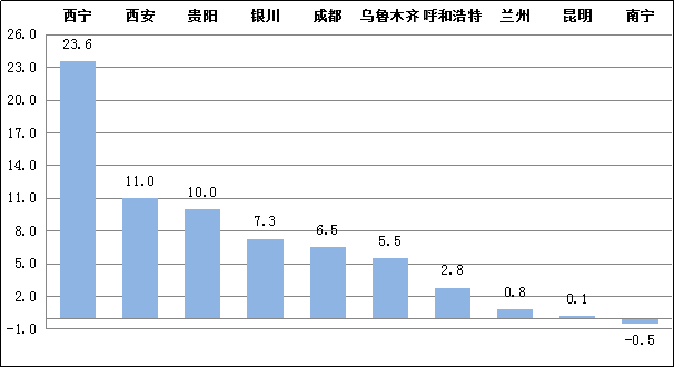 图二西部省会城市上半年规上工业增加值累计增速对比图