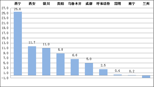 图二西部省会城市1—8月规上工业增加值累计增速对比图