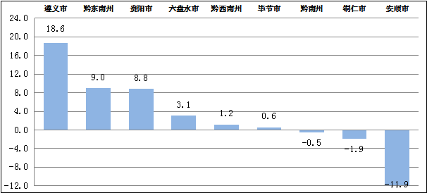 图三各地州市1—8月规上工业增加值累计增速对比图