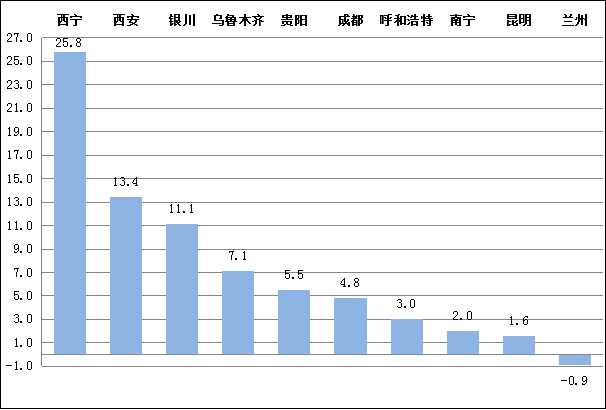 图二西部省会城市1—9月规上工业增加值累计增速对比图