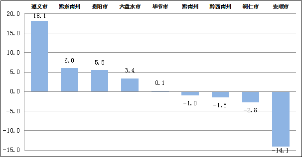 图三各地州市1—9月规上工业增加值累计增速对比图