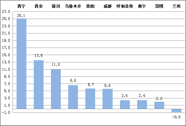 图二西部省会城市1—10月规上工业增加值累计增速对比图