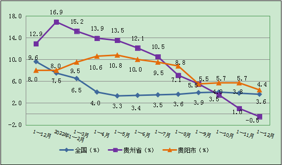 图一全国、全省、贵阳市2022年规上工业增加值增速对比图