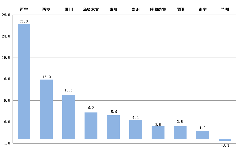 图二西部省会城市2022年规上工业增加值累计增速对比图