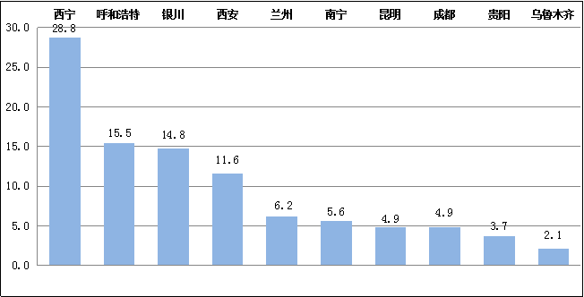 图二西部省会城市2023年1—3月规上工业增加值累计增速对比图