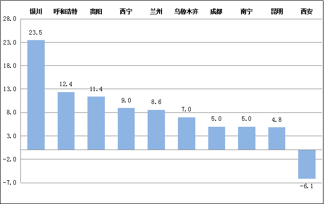 图二 2024年1—2月西部省会城市规上工业增加值累计增速对比图