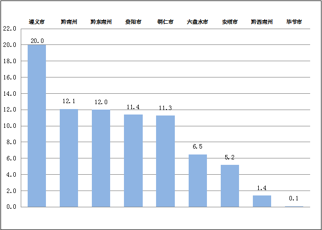 图三 2024年1—2月各地(州、市)规上工业增加值累计增速对比图
