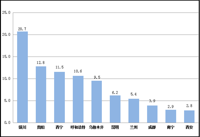 图二 2024年1—4月西部省会城市规上工业增加值累计增速对比图