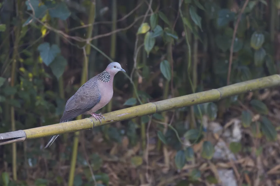 别名:花脖斑鸠、珍珠鸠、斑颈鸠、珠颈鸽、野鸽子、花斑鸠、灰咕咕