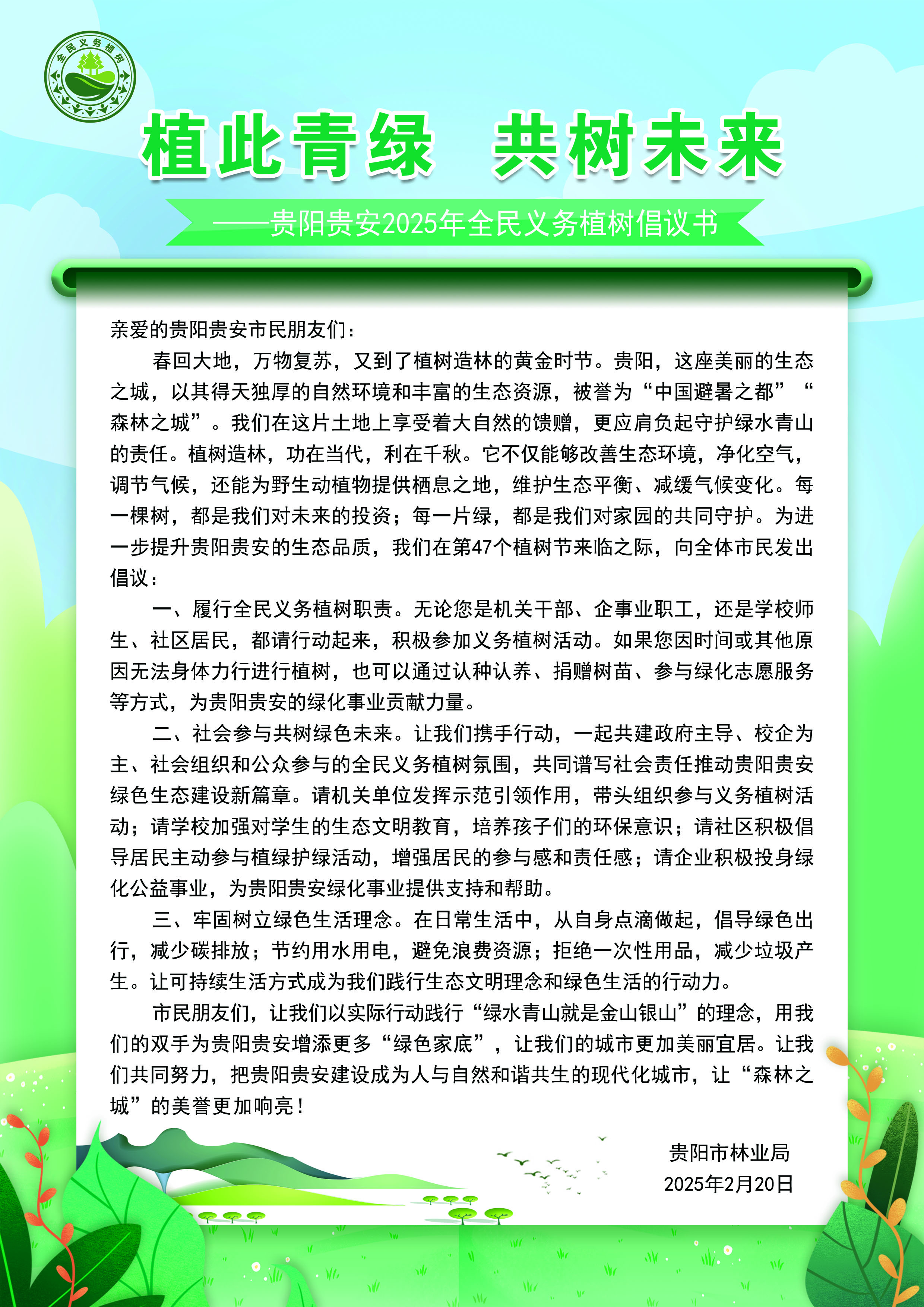 植此青绿 共树未来——贵阳贵安2025年全民义务植树倡议书