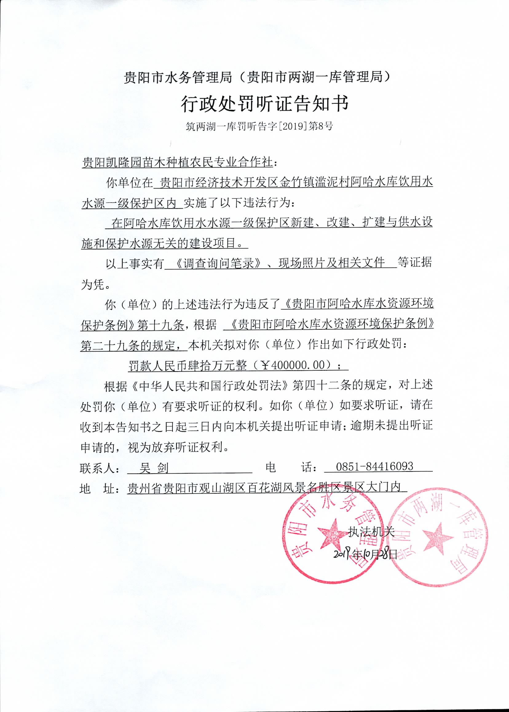 筑两湖一库罚听告字[2019]第8号,详见下图: