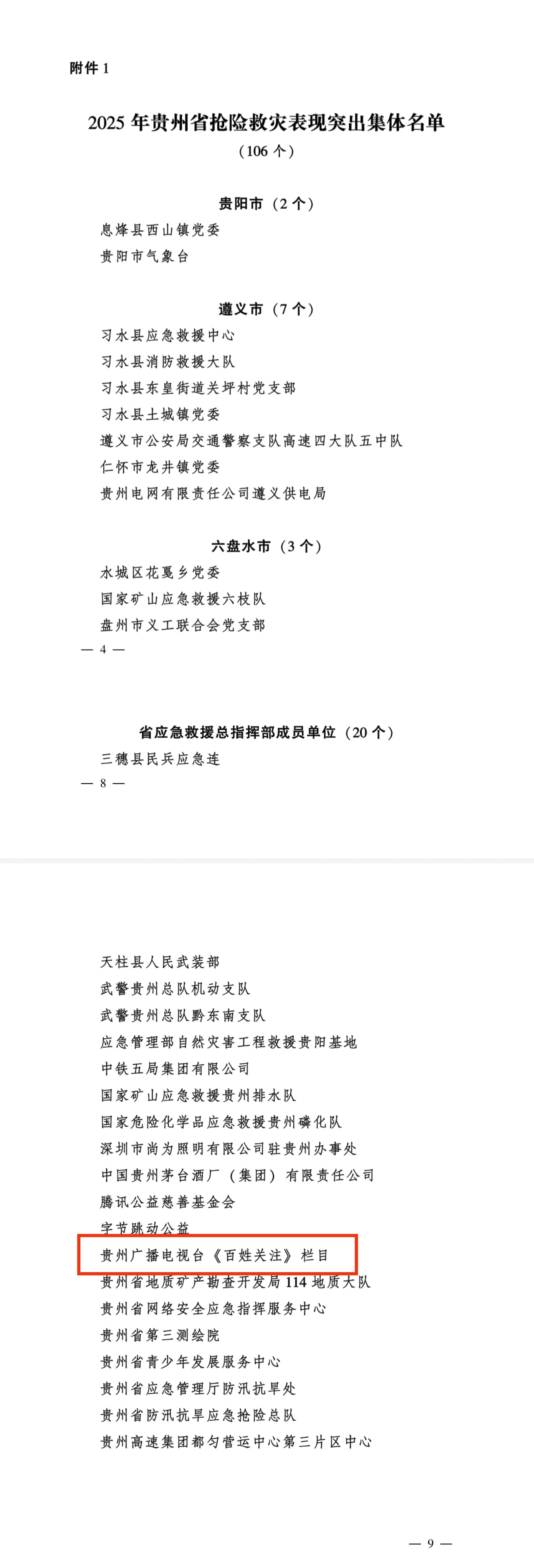 抢险救灾表现突出!贵州这106个集体,609名个人通报表扬,《百姓关注》受到表彰