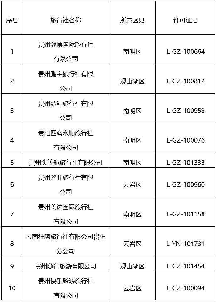 根据我市旅行社涉诉统计,旅游市场秩序整治的要求,现将2025年5月1日-5月31日贵阳市投诉量前十的旅行社名单公布如下: