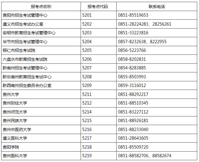七、贵州省2025年全国硕士研究生招生考试报考点及联系电话