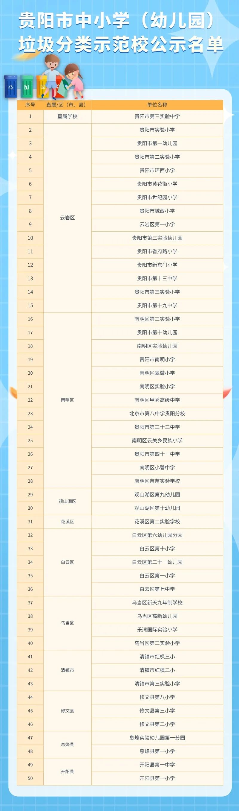 贵阳市中小学(幼儿园)垃圾分类示范校公示名单