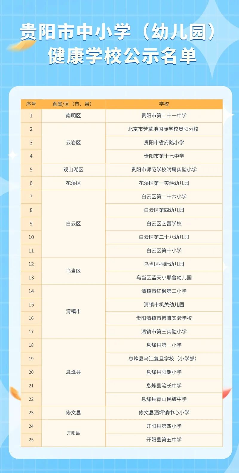 贵阳市中小学(幼儿园)健康学校公示名单