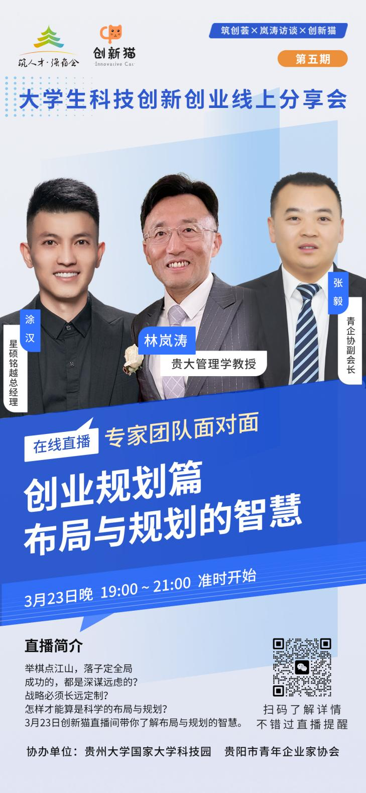 为帮助大学生更有效地开展自主创业,将于3月23日开展第五期线上分享活动。