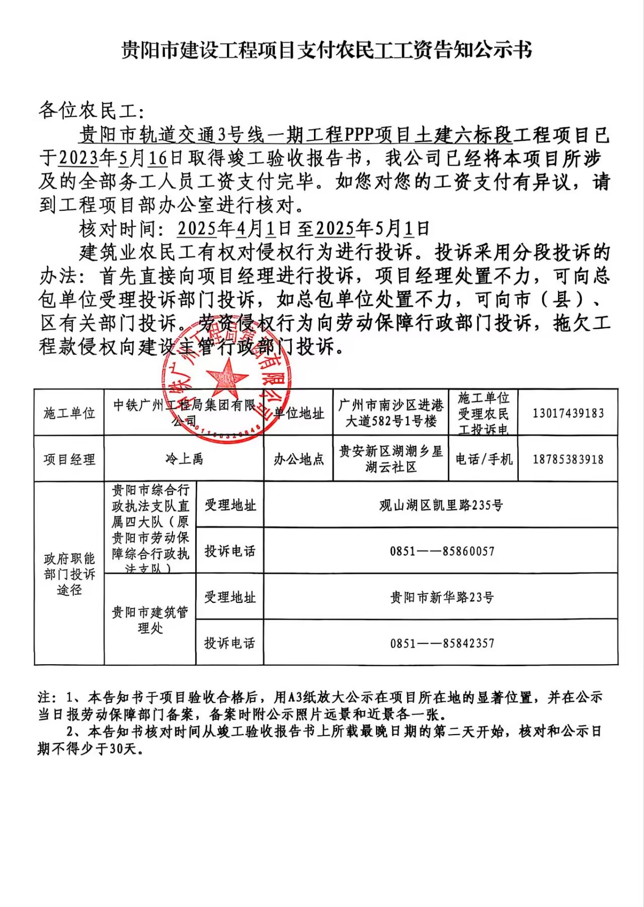 关于返还农民工工资保证金的公示(3号线土建6标、3号线土建7标)