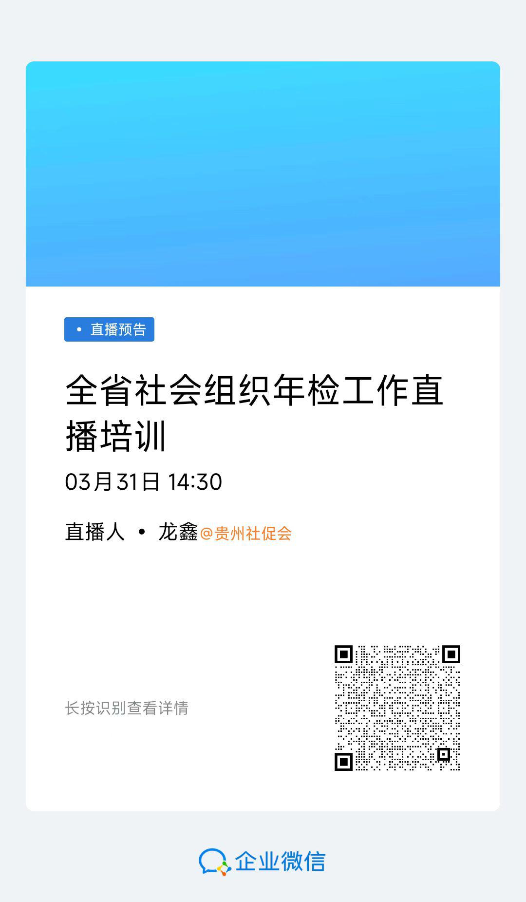 (三)3月31日下午2点30分省民政厅将举行2024年度全省社会组织年度检查工作培训视频会,届时,将进行现场直播,请各社会组织微信扫码(见附件3)进行观看。