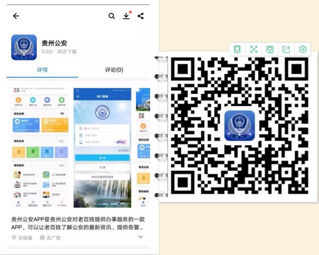 下载方法,手机应用商城搜索“贵州公安”下载,也可扫下面二维码下载