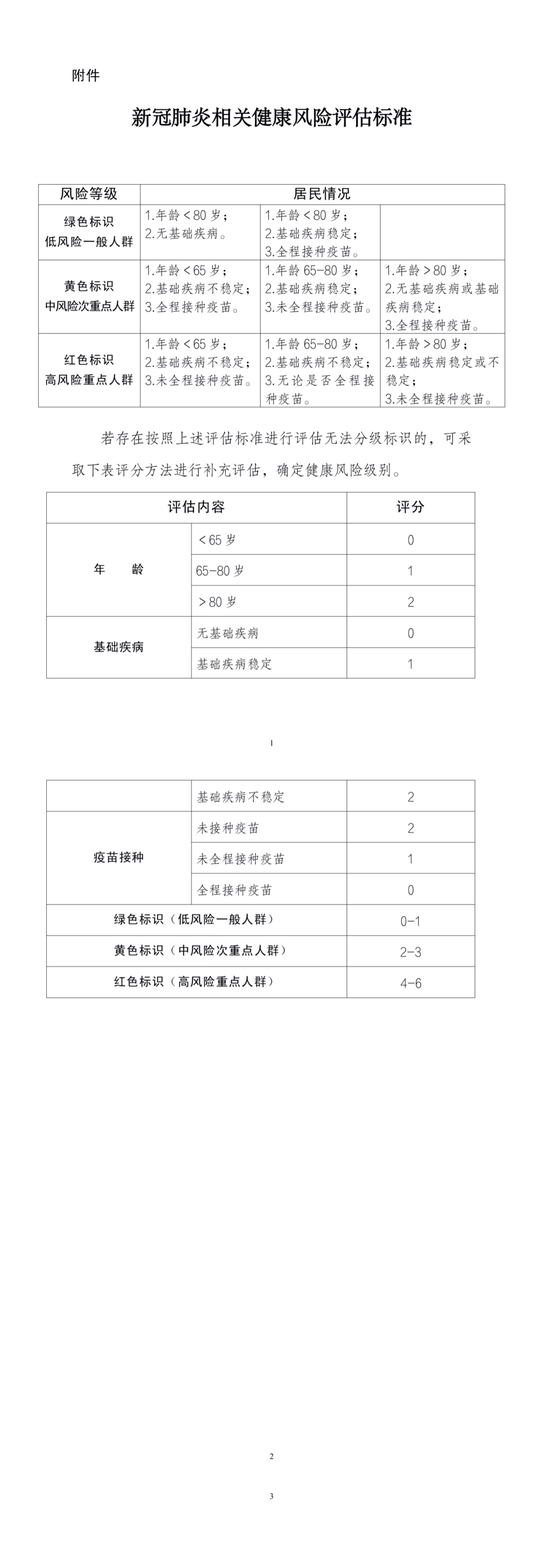 为做好新冠肺炎医疗救治工作,全力保障高龄合并基础疾病等重症风险较高的感染者及时救治,最大可能降低重症率、病亡率,在保障新冠肺炎救治工作顺利进行的同时,确保正常医疗服务开展,构建更加科学有序的就医秩序,制定本方案。 适应疫情防控新形势和新冠病毒变异的新特点,按照“健康监测、分类管理、上下联动、有效救治”的原则,科学统筹区域医疗资源,以网格化布局医联体为载体,完善亚定点医院、定点医院、医联体和医联体外部协作的三级综合医院之间的转诊机制,提高医疗服务效率和连续性,最大程度保护人民生命安全和身体健康。(一)构建新冠肺炎相关症状患者分级诊疗服务网络。统筹现有医疗资源,以地级市、县为单位,按照分区包片原则,规划覆盖辖区内所有常住人口的若干网格,每个网格内组建1个医联体(包括城市医疗集团和县域医共体),或依托现有医联体将辖区内所有居民纳入管理。科学统筹亚定点医院、定点医院和医联体之间的空间布局,明确高水平三级医院作为医联体外部协作医院,建立对应转诊关系,畅通双向转诊机制,实现发热等新冠肺炎相关症状患者的基层首诊、有序转诊。 1.以家庭医生签约服务为重点引导患者基层首诊。社区卫生服务中心、乡镇卫生院要对辖区内老年人合并基础病等特殊人员实施健康监测,提前摸清底数,根据健康风险等级实施分级健康管理(见附件),以绿(低风险一般人群)、黄(中风险次重点人群)、红(高风险重点人群)进行分级标识,对健康档案为黄色、红色的人员进行专案管理。地方卫生健康行政部门应当指定医疗机构对口负责养老院、福利院等机构老年人的健康监测,确保高风险人群健康监测全覆盖。要提升家庭医生签约服务覆盖率,对辖区内0-6岁儿童、孕产妇、65岁以上老年人、有基础性疾病患者等家庭医生签约服务人群建立台账,强化履约质量,丰富签约服务内涵,将老年人合并基础病等特殊人员健康监测纳入家庭医生签约服务范围。通过一封信、告知书、设置热线电话以及新媒体网络等方式,将基层医疗卫生机构或医务人员的联系方式通知到每一个重点人群,确保在必要时能够及时取得联系。 发现患者有新冠肺炎相关症状时,家庭医生应当指导其到签约服务的社区卫生服务中心或乡镇卫生院发热诊室(门诊)就诊;若患者病情超出基层医疗卫生机构诊疗能力,则应当在医联体牵头医院指导下,及时转诊至有相应诊疗能力的医疗机构。 2.加强新冠病毒感染者的分级分类就诊转诊。基层医疗卫生机构要及时指导出现新冠肺炎相关症状的重点人群进行抗原检测,抗原检测阳性的,及时按照以下分级原则进行管理和转诊: (1)未合并严重基础疾病的无症状感染者、轻型病例,采取居家隔离或居家自我照护,必要时给予口服药治疗,密切监测其健康状况。高龄行动不便的,在病情允许情况下,原则居家或在养老机构就地治疗,医务人员提供上门服务,不转出集中救治。 (2)普通型病例、高龄合并严重基础疾病(心脏病、肿瘤等)但病情稳定的无症状感染者和轻型病例,转诊至医联体对应的亚定点医院治疗。 (3)以新冠肺炎为主要表现的重型、危重型病例和需要进行血液透析的病例,转诊至医联体对应的定点医院集中治疗,其中危重型病例收治于ICU病房,重型病例收治于亚ICU病房,需要血液透析的病例收治于普通病房。 (4)以基础疾病为主的重型、危重型病例,以及基础疾病超出基层医疗卫生机构、亚定点医院医疗救治能力的,转诊至医联体牵头医院治疗,牵头医院不是三级综合医院或能力不满足患者救治需要的,转诊至与医联体建立协作关系的三级医院。 医疗机构要严格落实首诊负责制和急危重症抢救制度,不得以任何理由推诿或拒绝新冠病毒感染者就诊。 1.提高基层医疗卫生机构服务能力。具备条件的社区卫生服务中心或乡镇卫生院均要设置发热诊室(门诊),发热诊室要有具备执业医师资格人员,完善消毒、检查检验、应急抢救等相应设备和药品配置,具备预检、分诊、筛查功能。多渠道扩充基层医疗卫生人员队伍,吸引医疗机构已退休医务人员到基层医疗机构卫生机构执业。发挥医联体内二级以上医院的支撑作用,向医联体内的社区卫生服务中心或乡镇卫生院派出呼吸、感染、中医等相关专业医师和院感管理人员,驻点出诊、指导。未加入医联体的,由所在地县级卫生健康行政部门指定二级及以上医疗机构选派相关人员驻点服务。同时,通过远程医疗等方式提高基层医生对高风险人群的识别、诊断和处置能力。各地要对照第九版诊疗方案,按照服务人口的15-20%配齐配足中药和抗原检测试剂盒。 有条件的地方,可以通过组建巡诊小分队等形式,指导老年人合并基础病等特殊人员以及居家隔离人员做好自我健康监测、抗原自测和异常报告,上门为抗原异常者采集核酸,对需要就医的协助联系转诊。 2.提高医联体牵头医院新冠肺炎患者救治能力。加快推进ICU病房、缓冲病房、可转换ICU床位建设,1张ICU床位配备1名医师和2.5-3名护士作为一线医护人员,并按照一线医护人员总数的20-30%储备后备力量。建立由重症医学专业医护人员和其他专科经培训医护人员组成的混合编组工作模式。要加强培训,提高有关医护人员重症救治能力。 (四)做好转运车辆配置和调度。各市、县应当以网格化布局医联体为单位,按网格
