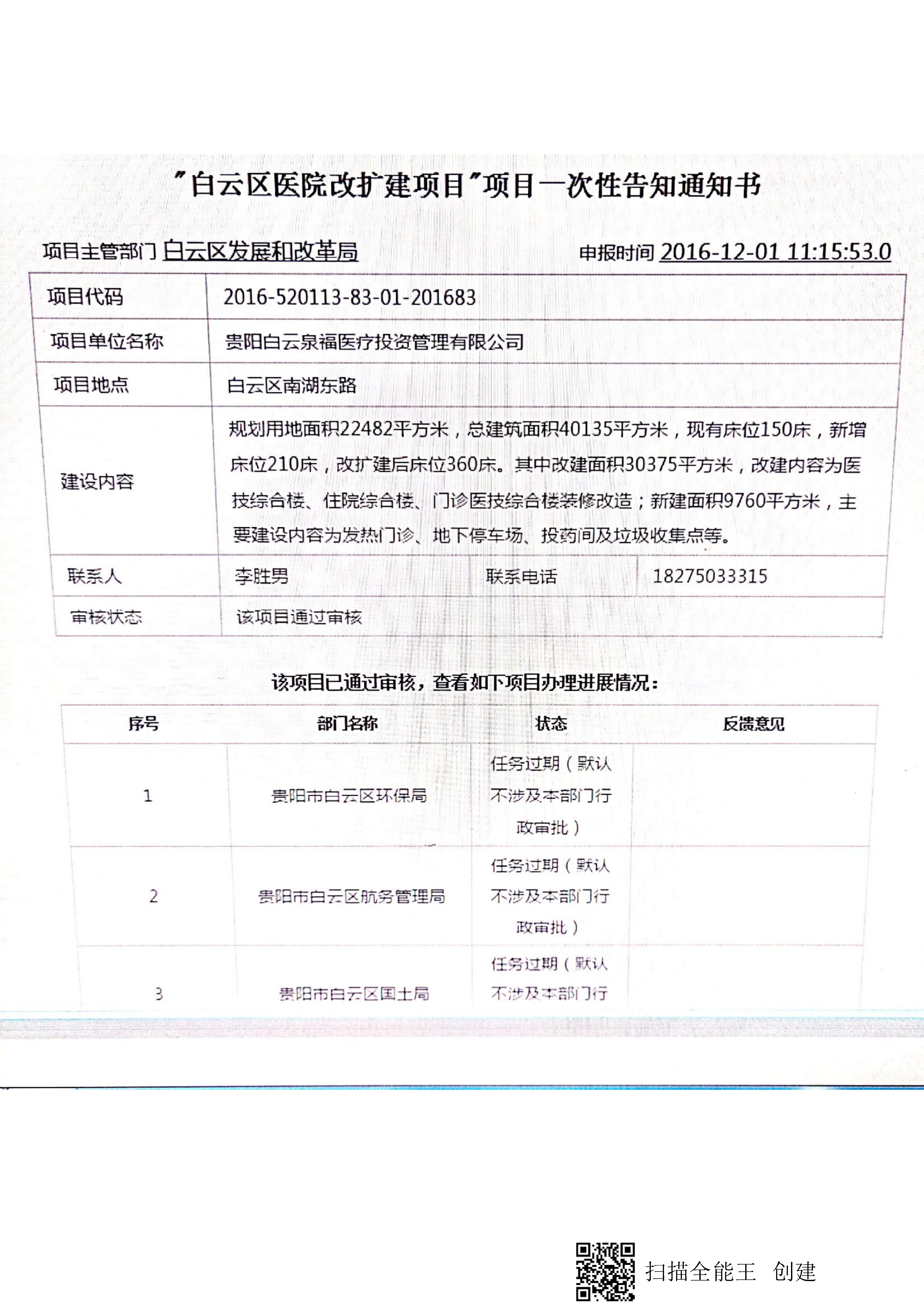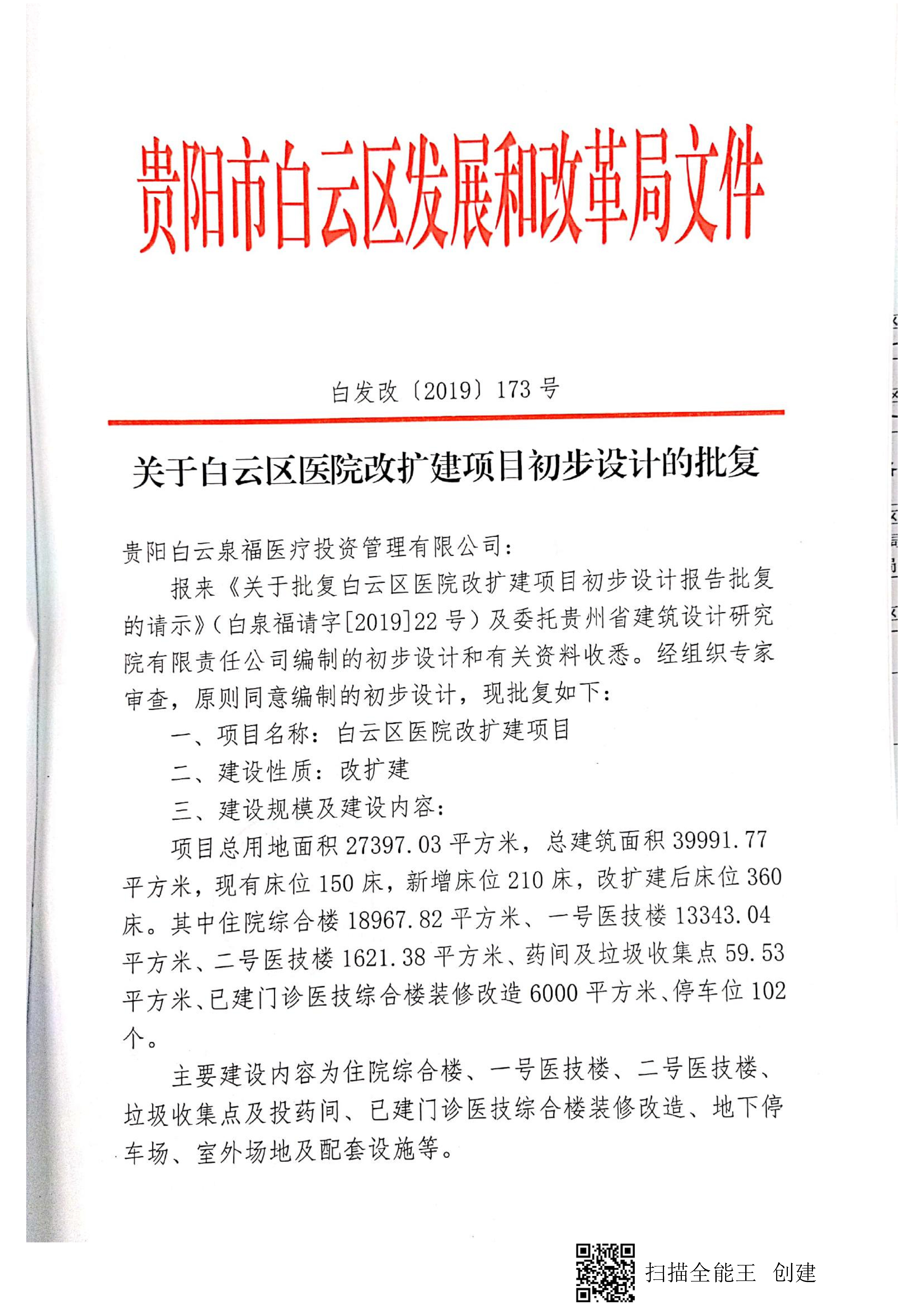 关于白云医院改扩建项目初步设计的批复,详情如下: