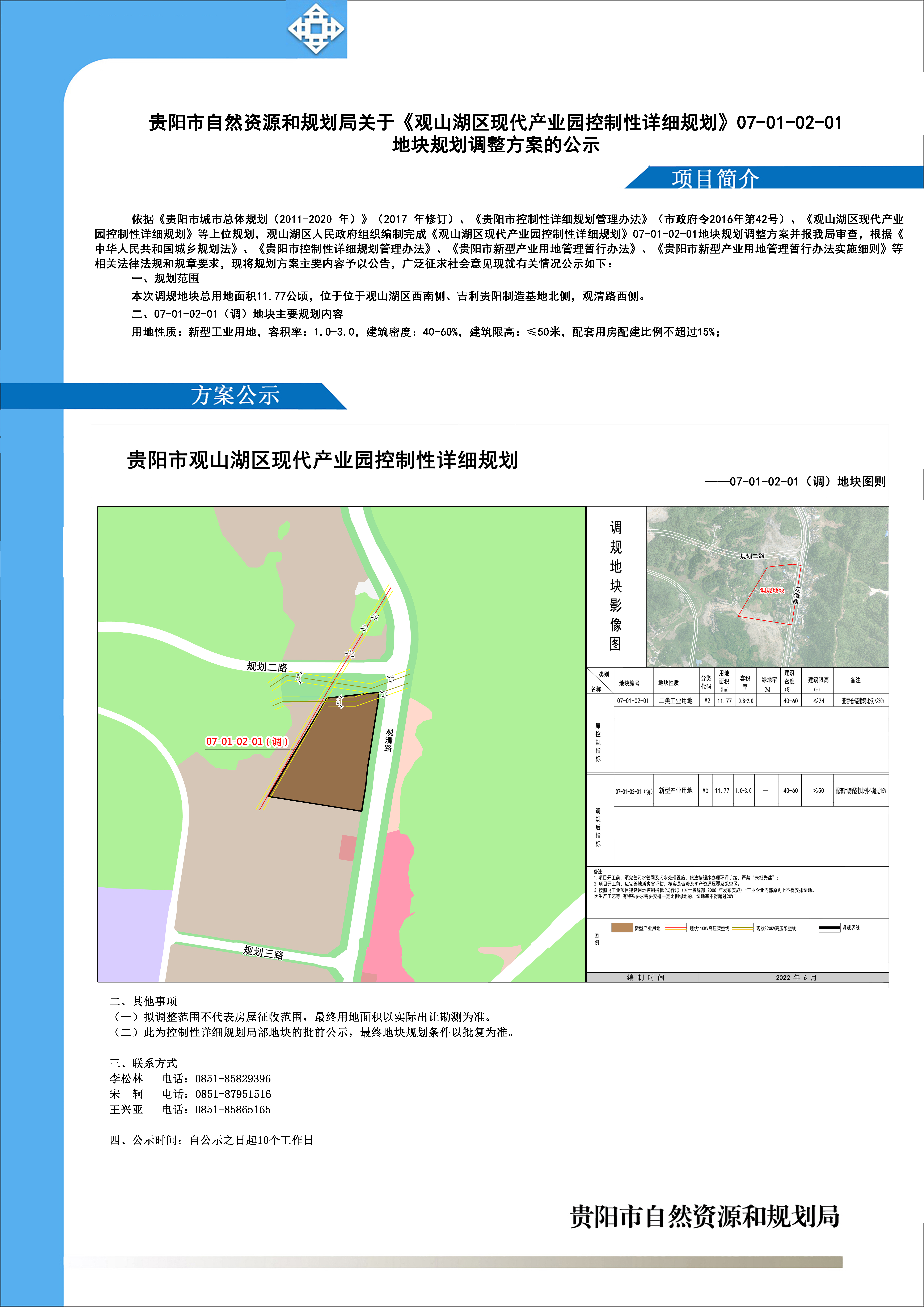 贵阳市自然资源和规划局关于《观山湖区现代产业园控制性详细规划》07-01-02-01地块规划调整方案的公示