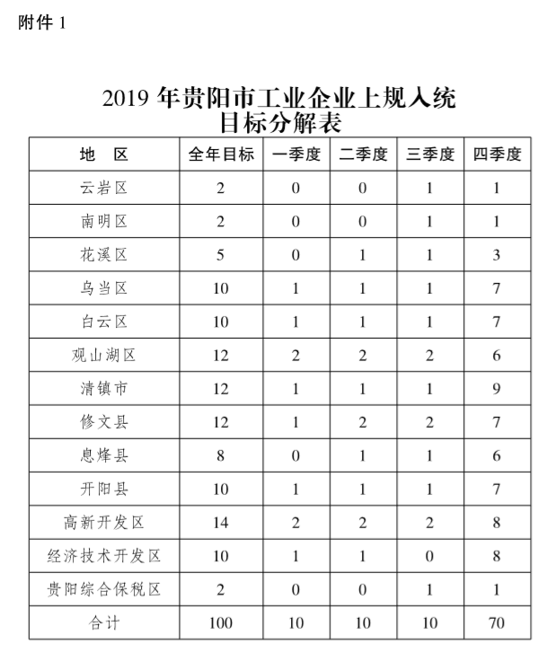 附件:1.2019年贵阳市工业企业上规入统目标分解表