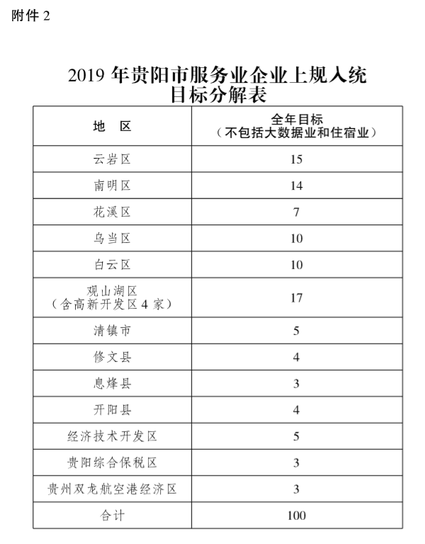 2.2019年贵阳市服务业企业上规入统目标分解表
