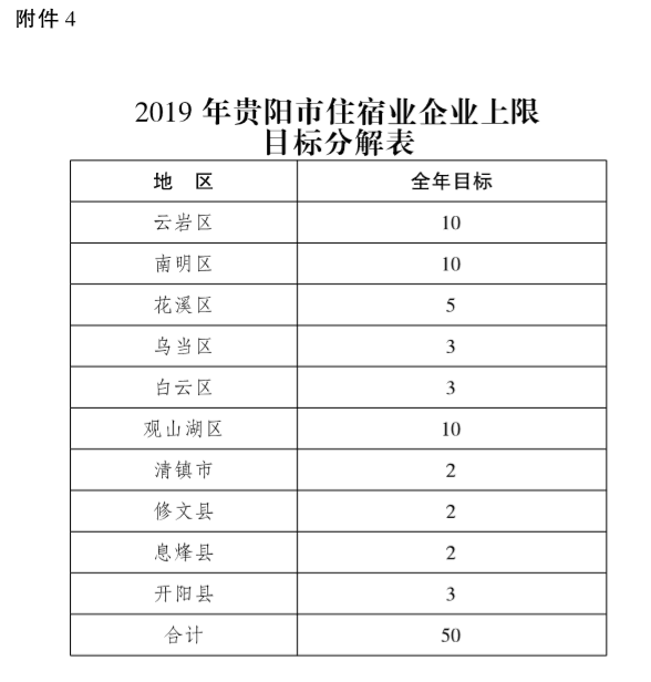 4.2019年贵阳市住宿业企业上限入统目标分解表