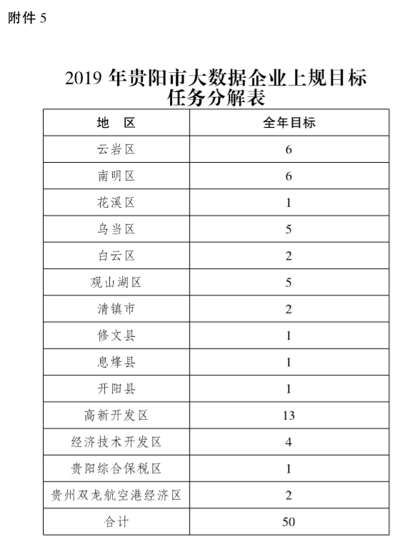 5.2019年贵阳市大数据企业上规入统目标任务分解表
